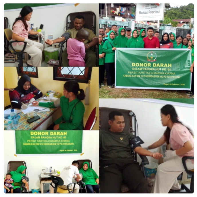 NN | MANOKWARI BARAT (PAPUA BARAT) – Dalam rangka memperingati Hari Ulang Tahun (HUT) Persit Kartika Chandra Kirana (KCK) ke-80 Tahun 2026, Kodim 1812/Pegunungan Arfak (Pegaf) menyelenggarakan kegiatan donor darah yang bertempat di Kantor Palang Merah Indonesia (PMI) Wosi, Distrik Manokwari Barat, Papua Barat, Jumat (06/02/2026).