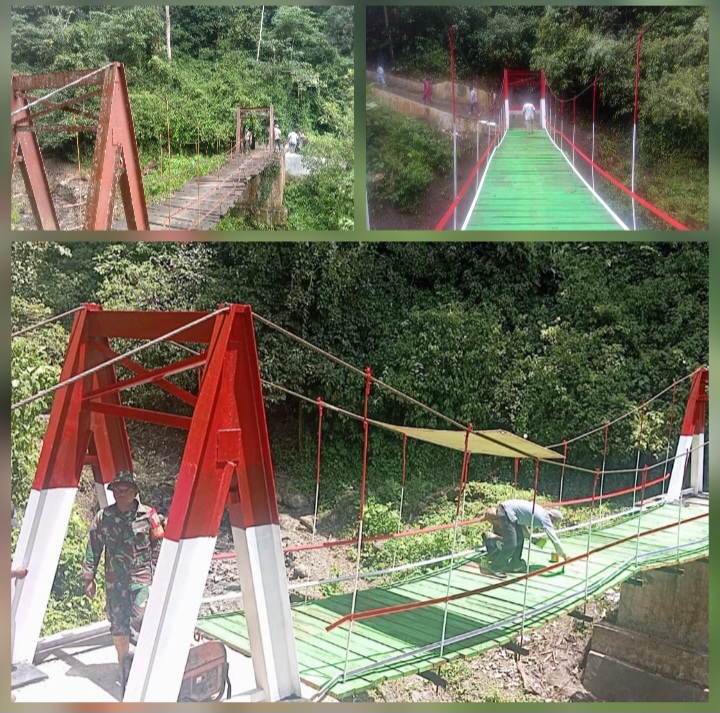 INN | MANDAILING NATAL (SUMUT) – Kodim 0212/Tapanuli Selatan bersama masyarakat menuntaskan pembangunan jembatan gantung yang menghubungkan Desa Simpang Duhu Dolok dengan Desa Simpang Pining, Kecamatan Ulu Pungkut, Kabupaten Mandailing Natal, Senin (27/4/2026). Jembatan ini sebelumnya rusak akibat diterjang banjir sehingga mengganggu aktivitas warga.
